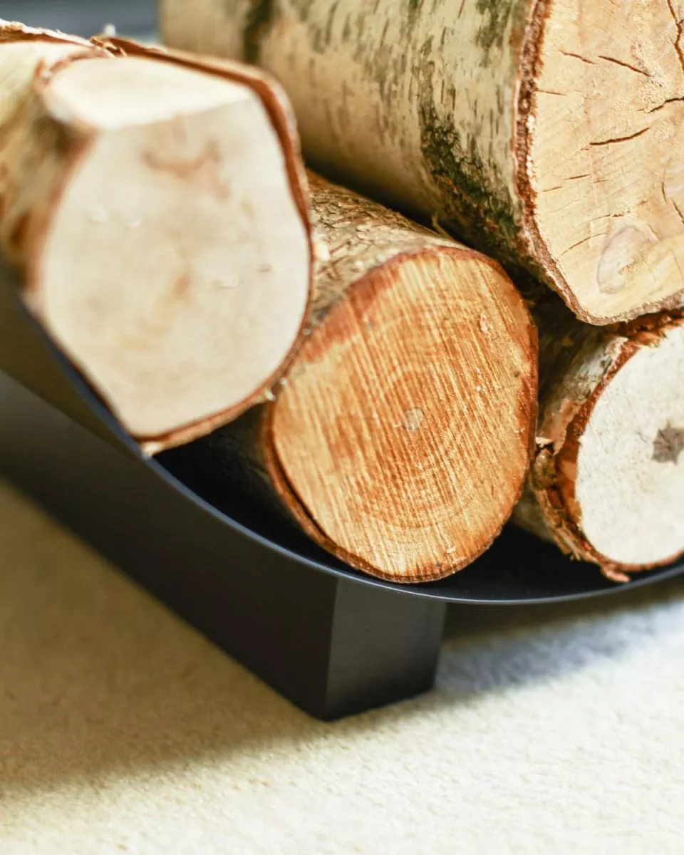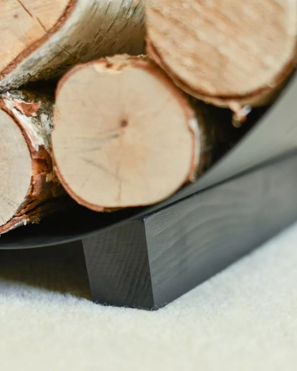 Minimalistischer Kaminholzhalter in Halbmondform – stilvoll & funktional