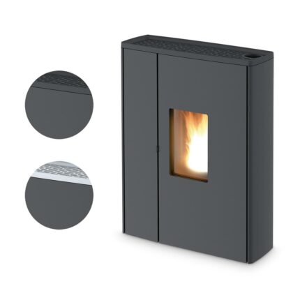 MCZ Cute Air 8 UP! – kompakter Pelletofen mit Maestro+, Oyster (raumluftunabhängig), Brushless & Quickstart. 8 kW, A+, Rauchrohr oben, Stahl schwarz.