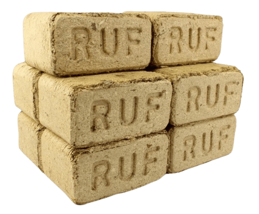 RUF Holzbriketts „Unser Sparfuchs“ werden aus verpresstem Holzmaterial hergestellt. Je nach Verfügbarkeit kommen Hart-, Weich- oder Mischholzsorten zum Einsatz. Es werden keine chemischen Zusatzstoffe verwendet.