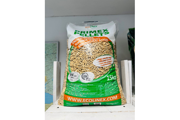 Holzpellets PRIMEX (ENplus A1 & DINplus zertifiziert) aus 100 % Kiefernholz ohne Zusatzstoffe. Heizwert > 5,1 kWh/kg, Aschegehalt < 0,3 %, Feuchte < 5 %. Geeignet für Pelletöfen und Pelletheizungen.